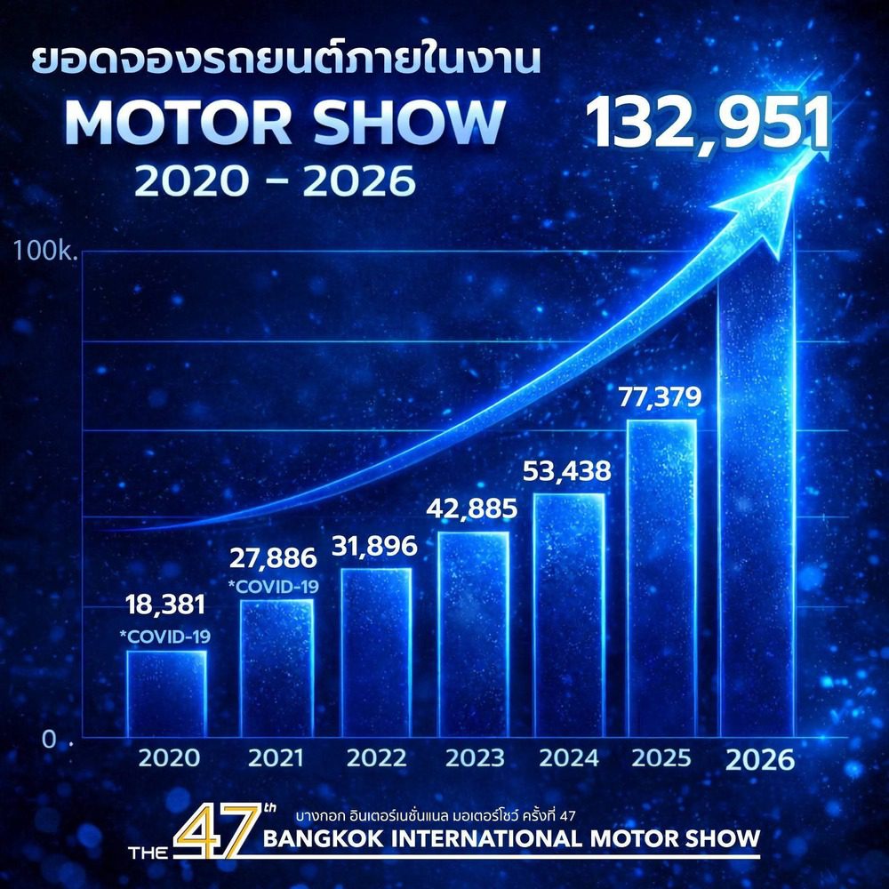 ปิดฉากลงอย่างสวยงาม สำหรับงาน Bangkok International Motor Show ครั้งที่ 47 ซึ่งจัดโดย บริษัท กรังด์ปรีซ์ อินเตอร์เนชั่นแนล จำกัด (มหาชน) ภายใต้ธีม “The ICONIC SYNCHRONICITY” หรือ บริบทแห่งการขับเคลื่อนไร้ที่ติ ที่จัดขึ้นท่ามกลางสภาวะความผันผวนด้านพลังงาน เนื่องจากความไม่สงบในตะวันออกกลาง แต่การจัดงานยังคงได้รับความสนใจอย่างล้นหลามจากผู้บริโภคและผู้ประกอบการในอุตสาหกรรมยานยนต์ โดยตลอดระยะเวลาการจัดงานสามารถสร้างยอดจองรถยนต์ 132,951 คัน และรถจักรยานยนต์ 2,056 คัน ยอดผู้เข้าชมงานรวมทั้งสิ้น 1,798,312 คน สะท้อนถึงกำลังซื้อ และความเชื่อมั่นของตลาดที่เริ่มฟื้นตัวอย่างต่อเนื่อง