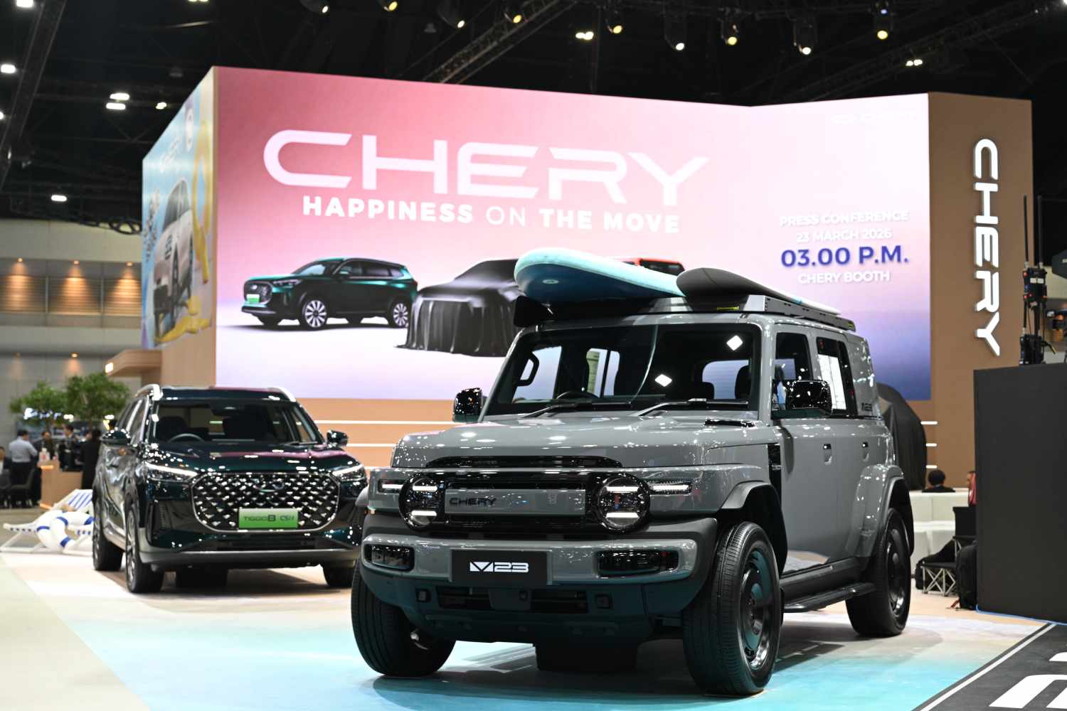 การเปิดตัวครั้งนี้ถือเป็นครั้งแรกของโลกนอกประเทศจีน พร้อมเสริมทัพด้วยไลน์อัพรถยนต์ที่ได้รับความนิยมในไทยอย่าง Chery V23 รถไฟฟ้าดีไซน์ Boxy และ Chery TIGGO 8 CSH SUV ปลั๊กอินไฮบริด 7 ที่นั่ง ตอกย้ำทิศทางการเติบโตของ CHERY ในตลาด EV ไทยที่กำลังขยายตัวอย่างรวดเร็ว