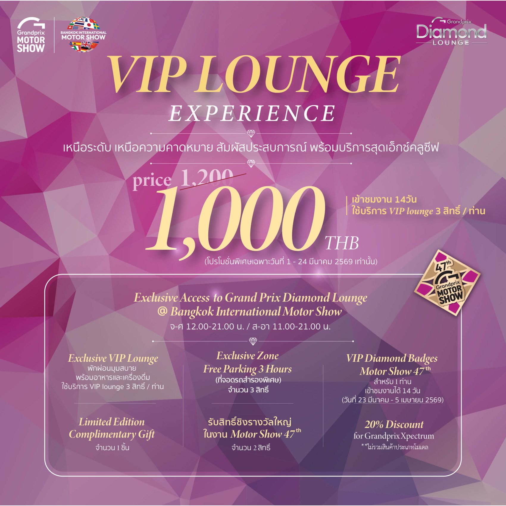 1. VIP Badge – Grand Prix Diamond Lounge เข้าชมงานได้ตลอด 14 วัน (วันที่ 23 มีนาคม – วันที่ 5 เมษายน 2569)